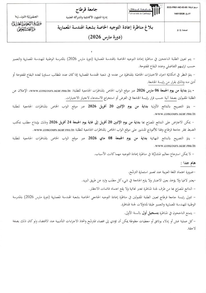 بلاغ مناظرة إعادة التوجه الخاصة بشعبة الهندسة المعمارية