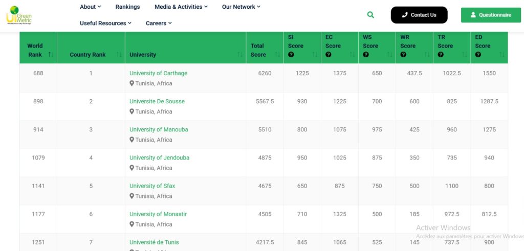 Education & Research: strengthening the integration of sustainability criteria in academic programs and scientific projects — an area in which the University of Carthage ranks first nationally.