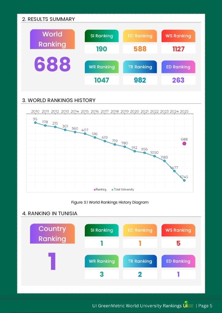 We are pleased to announce that the University of Carthage has officially received its UI GreenMetric recognition diploma, confirming our positioning in the international ranking of universities committed to sustainable development.